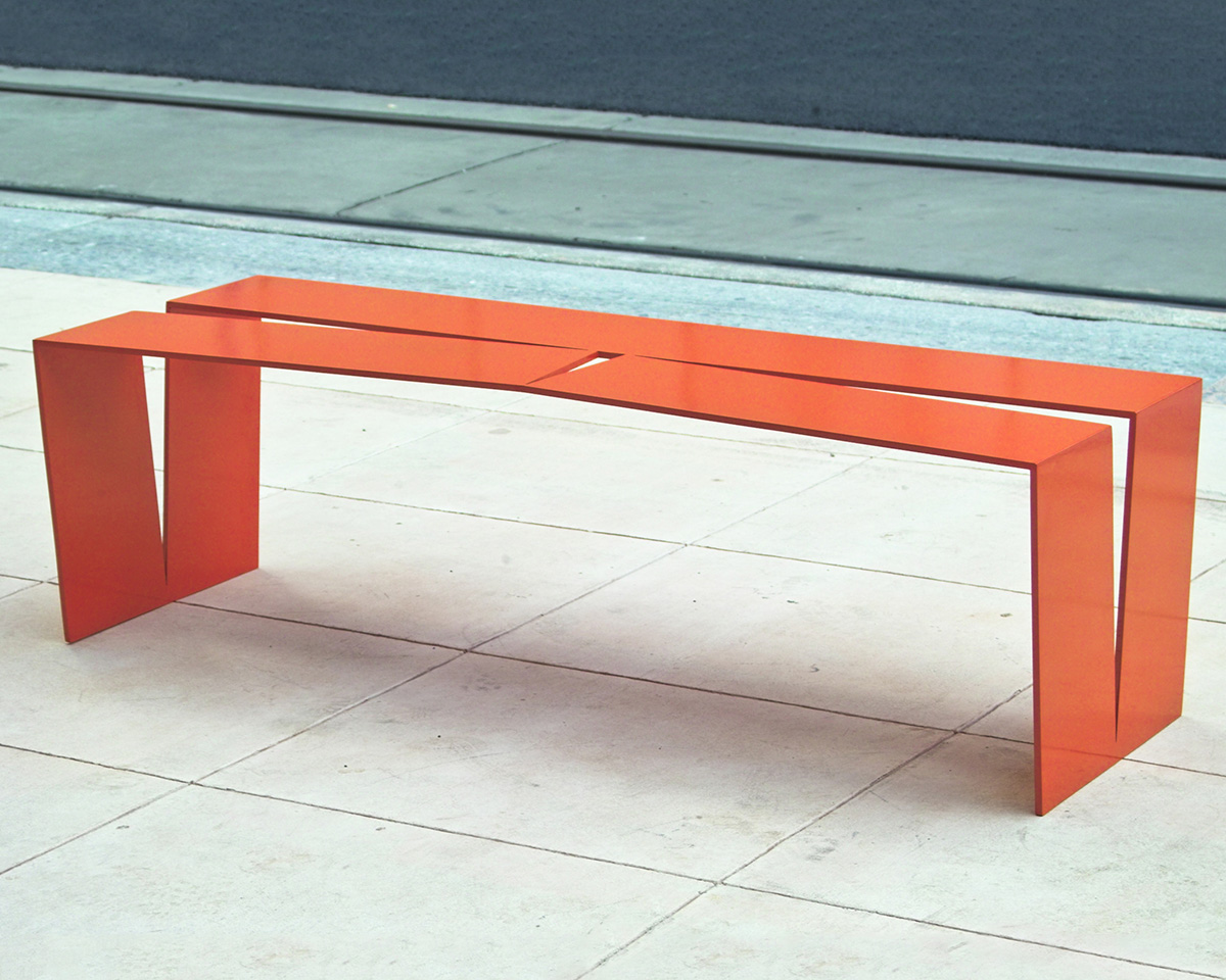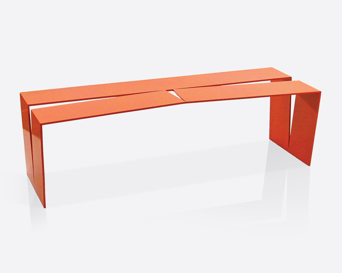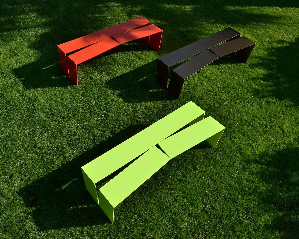 The Divide bench blurs the distinction between art and design. Constructed from solid steel, it is intended to bring people together. Visually, it began with two parallel lines, broken in the front, to offer the sitters both a personal and shared space. Divide is well suited for a wide variety of both indoor and outdoor applications.