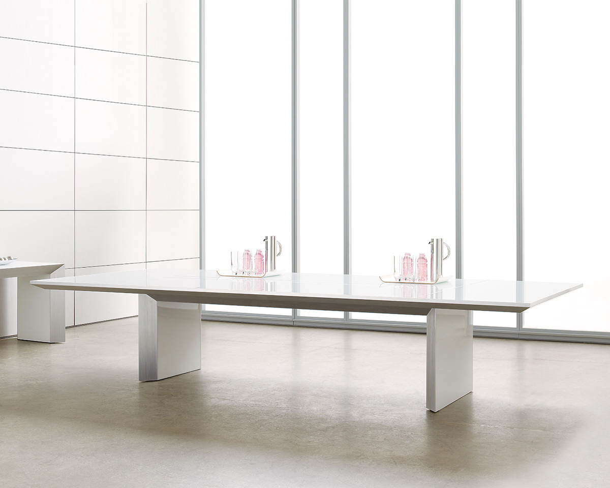 The Tavola conference table was designed to create a visual impact. Inspired by modern architecture, the piece integrates its utility including structure, electrical cabling, and leveling hardware on the inside while expressing clean, flush, uninterrupted simplicity on the outside.